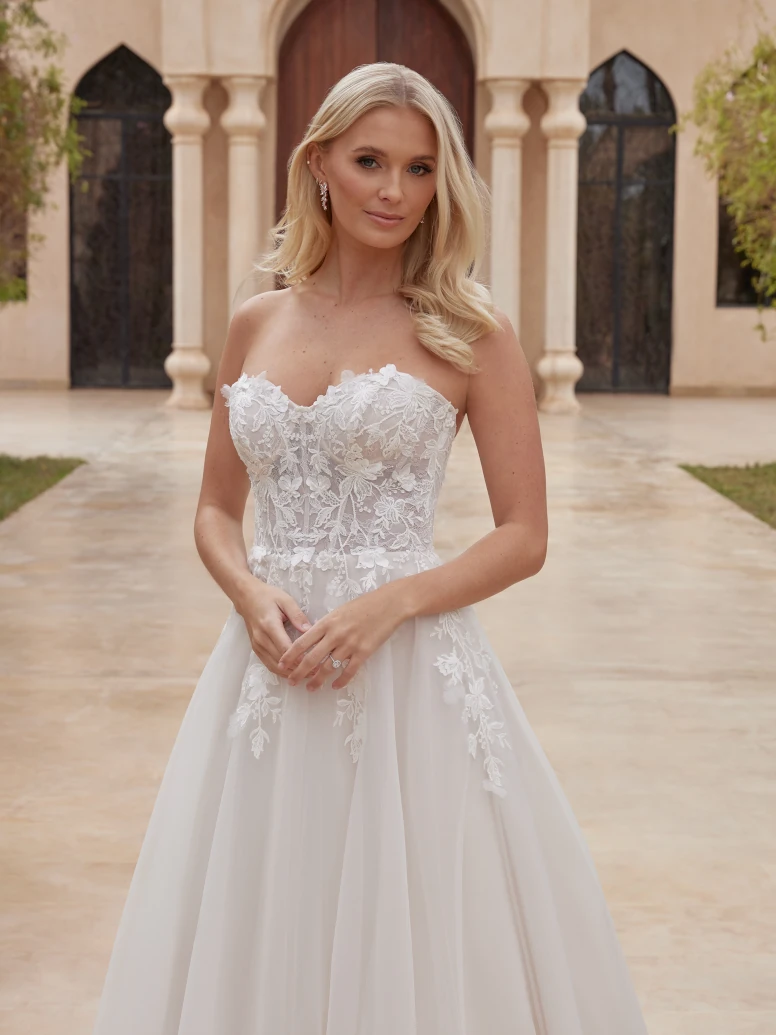 Erlebe zeitlose Eleganz und anmutige Silhouetten mit unseren A-Linien Brautkleidern. Diese schmeichelhaften Designs lassen dich an deinem großen Tag königlich strahlen.